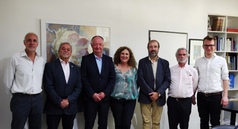 Am 03. April 2019 fand ein erstes Treffen zwischen GIZ, GTN und dem SegemAR (Geologischer Dienst Argentiniens) statt, bei welchem eine enge Kooperation im weiteren Verlauf des Projekts vereinbart wurde. Im Foto sind zu sehen (v.l.): Carlos Herrmann (SegemAR), Julio A. Ríos Gómez (Präsident SegemAR), Peter Seibt (GTN), Veronica Vukasovic (GIZ), Eduardo Zappettini (SegemAR), Alejandro Conde Serra (SegemAR), Ingmar Budach (GTN). Der SegemAR berichtet hierzu auch auf seiner Website: http://www.segemar.gov.ar/news/la-agencia-alemana-para-el-desarrollo-sostenible-visita-el-organismo-por-proyectos-geotermicos/